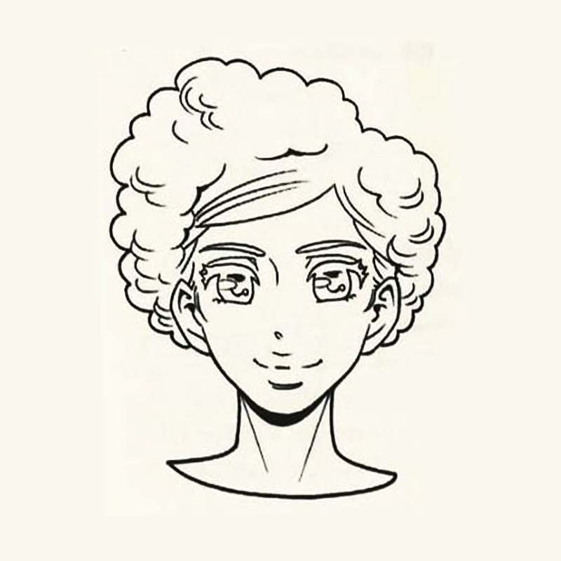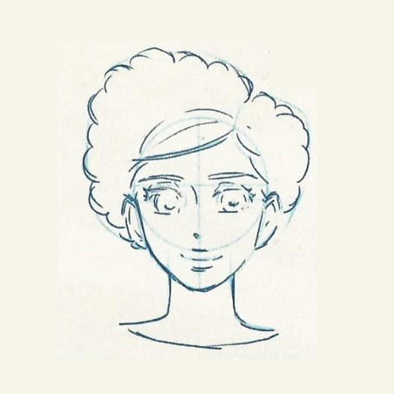 - Add further details. Adjust the position and the shape of every facial feature, taking into account the overall effect. For curly hair, like in this example, use wavy lines.