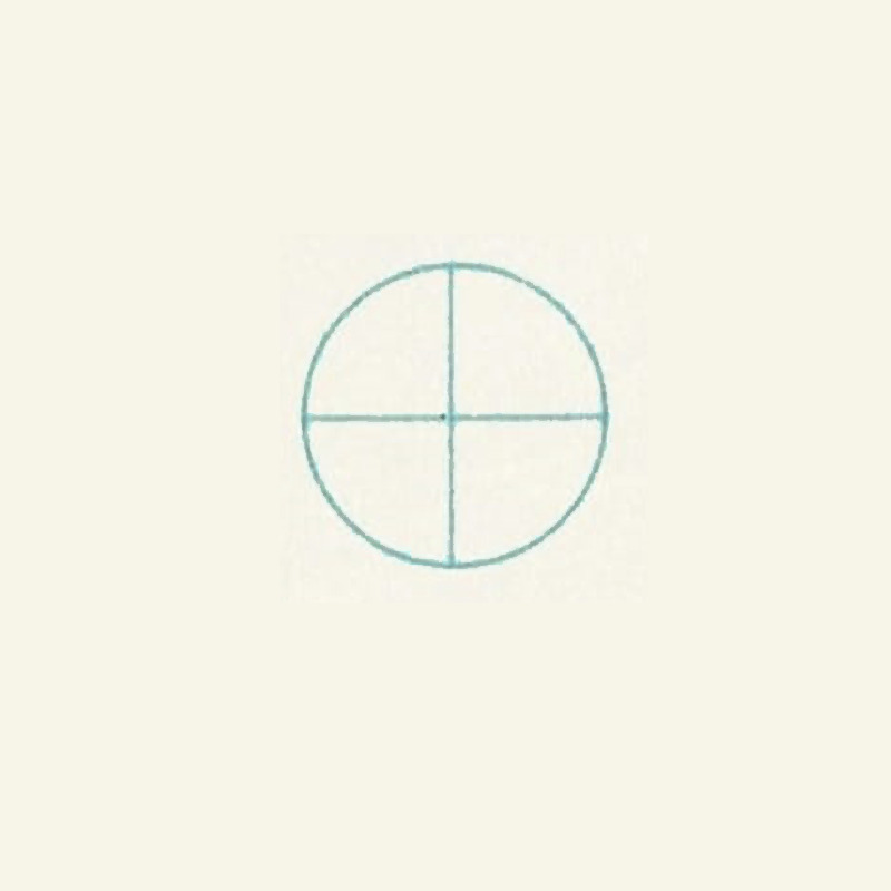 - Draw a circle and divide into four equal parts.