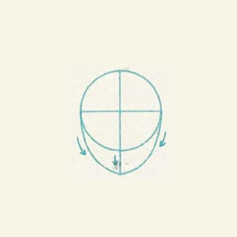 - Stretch the vertical line in the center to the correct base of the chin. Join the two curved lines at the end of the vertical line to the two ends of the horizontal line.